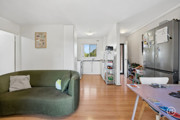 Perched on the first floor, the charming apartment welcomes you with a spacious open-plan living, dining and kitchen area that instantly feels like home.